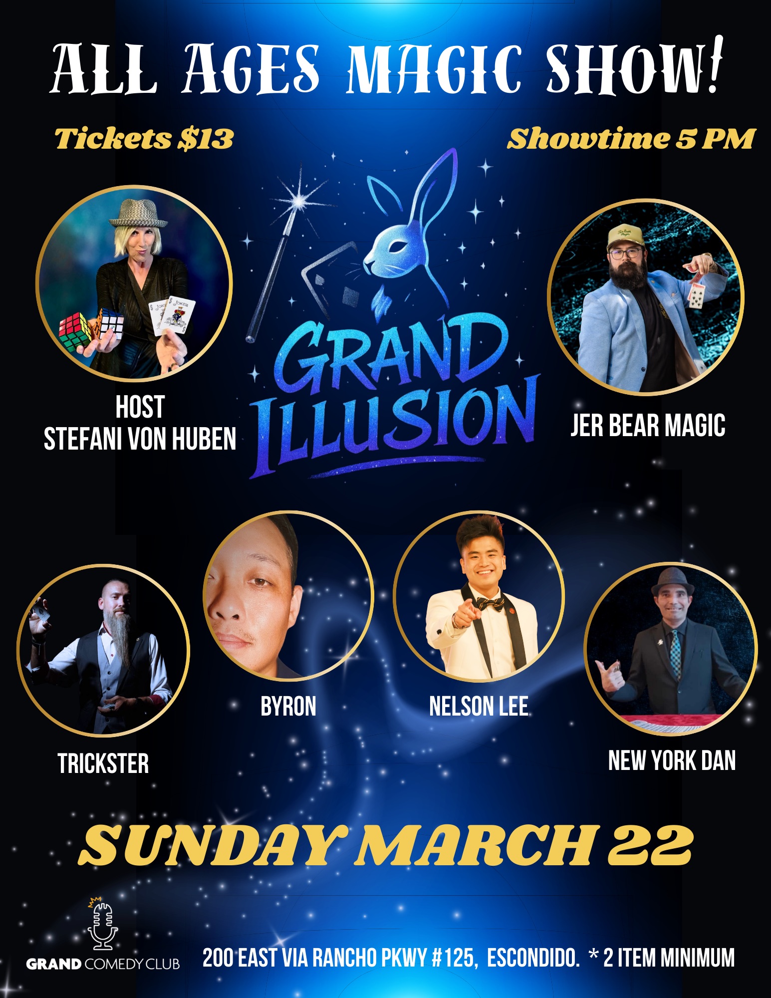 Grand Illusion Magic Show! All ages! AMAZING Magicians that perform at the Magic Castle and many other venues.