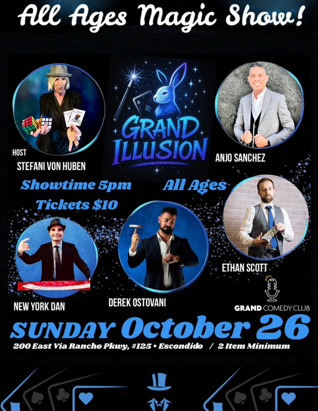 Grand Illusion Magic Show! All ages! AMAZING Magicians that perform at the Magic Castle and many other venues.
