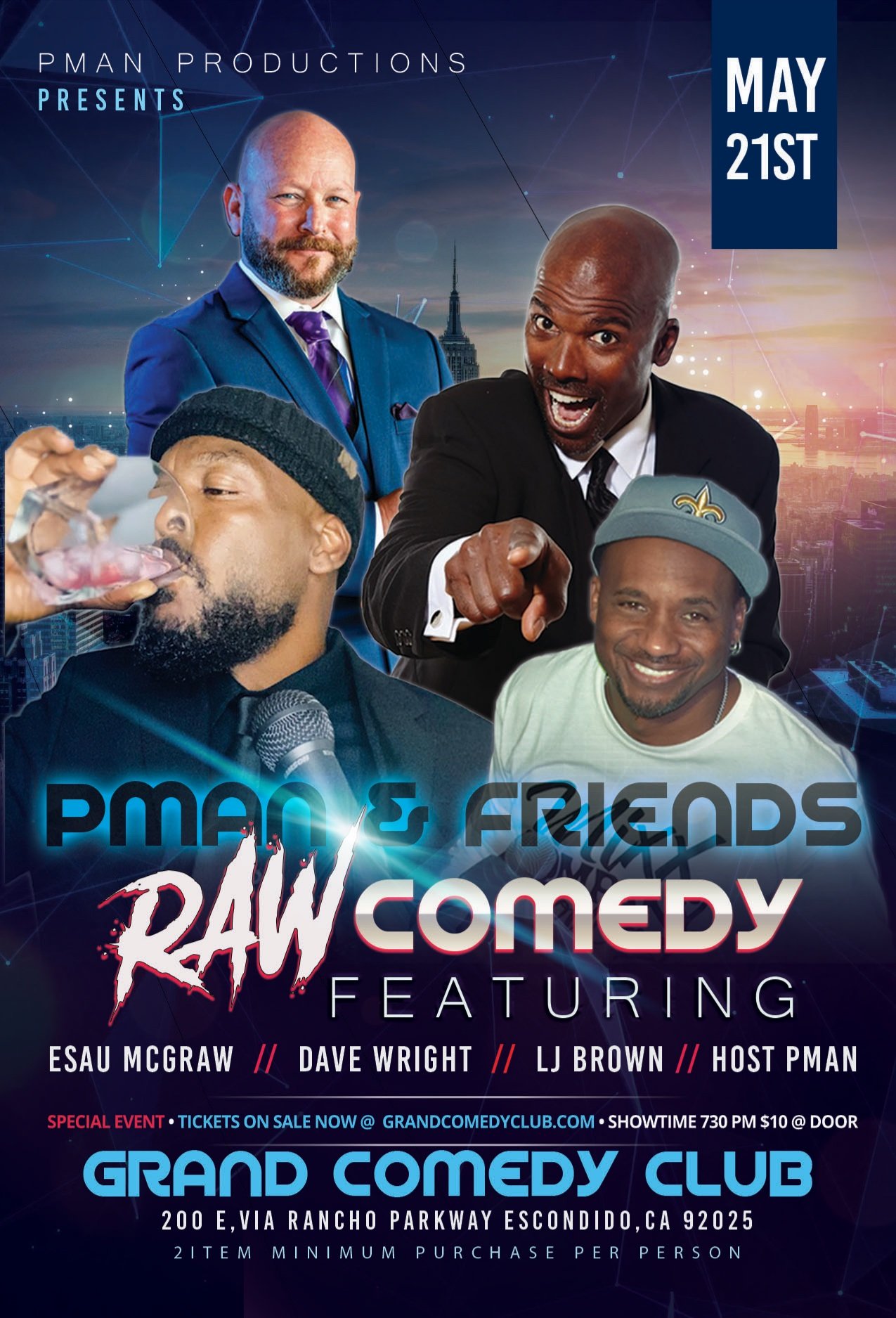 $10 – PMAN Productions Presents – RAW COMEDY NIGHT! (Bar opens at 3pm for Happy Hour, doors at 7)